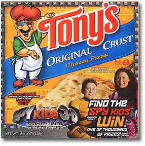 out for The movie... this is a box of Tony's Pizza that is offering 3D Trading